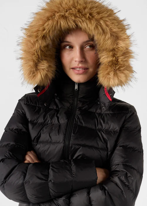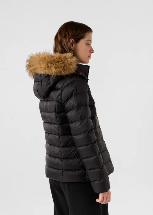 -Modèle luxe grand froid-Colori noir-Capuche amovible-Fourrure synthétique-Garnissage duvet et plumes-Déperlant